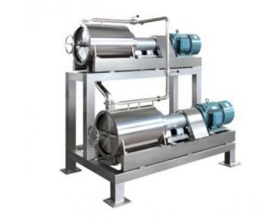 1、開機:開機前首先檢查轉(zhuǎn)動部件各零件的聯(lián)接是否牢固可靠、電動機轉(zhuǎn)向與標(biāo)牌是否一致,再向兩端軸承加進20號機械油,檢查軸內(nèi)所有螺釘是否松動,筒前蓋螺栓是否緊固,檢查無松動后,方可開機。然后均勻加進物料,切勿沖擊。視出渣出漿具體情況,適當(dāng)調(diào)整刮板的螺旋角及刮板與篩網(wǎng)的間隙使渣子的含汁率達到工藝要求。
