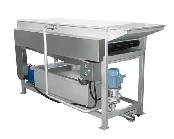 簡介—該設備適用于球形或長條圓形的果蔬清洗。果蔬原料在毛刷旋轉(zhuǎn)的推動下向前移動,洗凈度高。 ●選用較硬毛刷輥絲徑,可達到原果清洗去皮的目的; ●根據(jù)要求設計,選用柔軟的毛刷輥絲徑,可達到原果清洗上臘拋光的目的。
